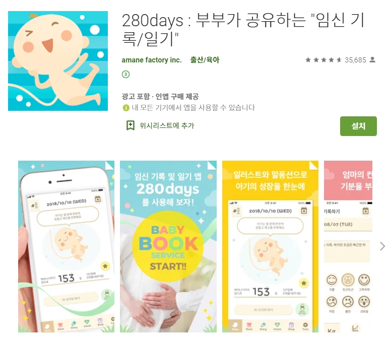 5. 280days (부부 임신 기록 일기) 어플