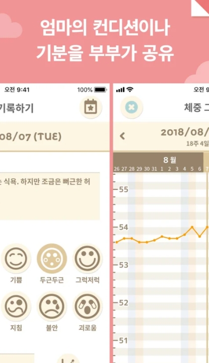 부부가 함께 공유하는 *무료* "임신 기록&임신 일기" 앱.