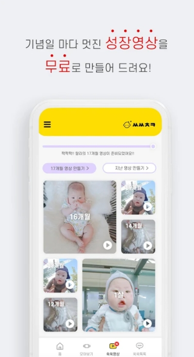 아기 사진 정리, 성장 영상 제작의 최강자 어플! 쑥쑥 찰칵입니다~