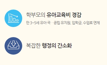 - 유아학비(3~5세) : 유치원에 입학하여 재원중인 만 3~5세 전체 계층 아동