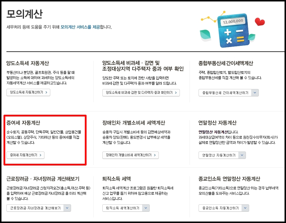 증여세계산기,종부세계산기,증여세모의계산,종합부동산세계산기,재산세계산기,취득세계산기