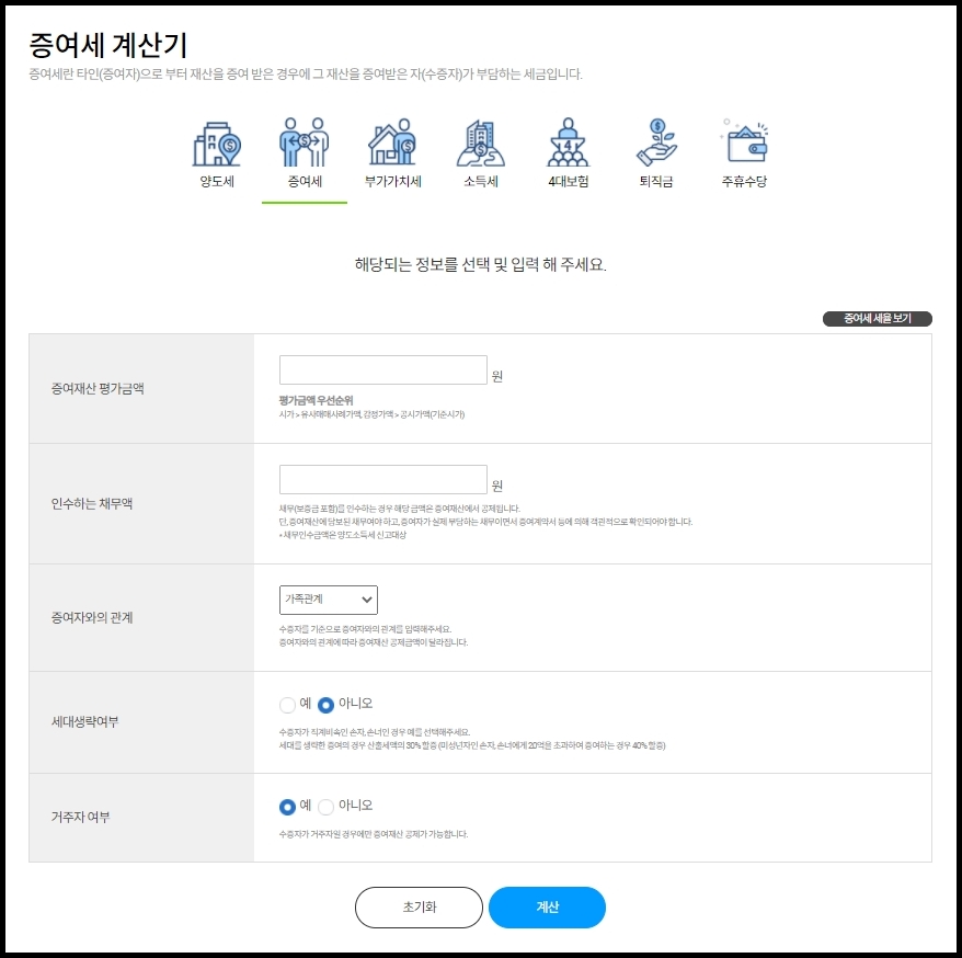 4. 증여세 계산기 사이트를 이용한 간편 계산해보기