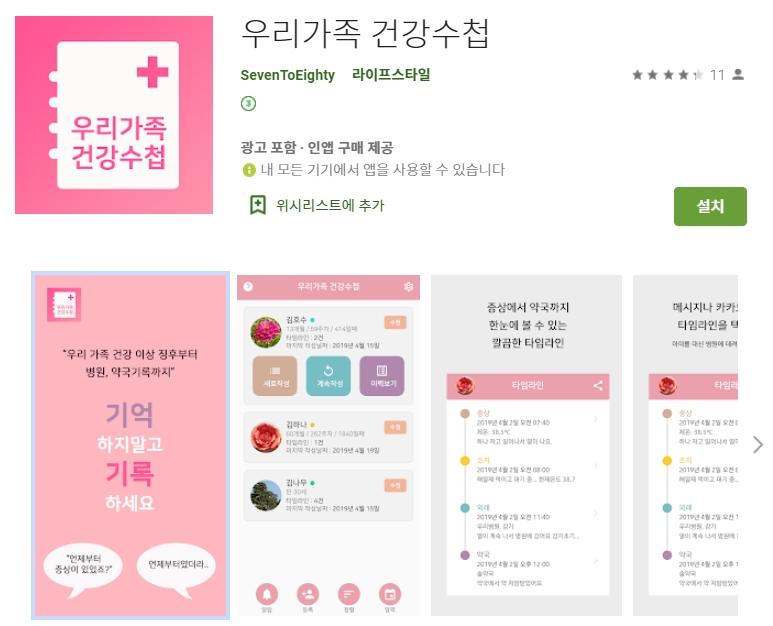 우리 가족 건강수첩 어플을 만들어 주신 개발자님 감사합니다~