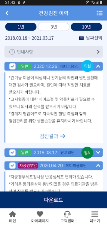 ▶ 일일이 기록하고 기억하지 않아도 내 건강진료 정보를 한눈에 볼 수 있게 되었네요~ 너무나 편리하고 좋습니다~~^^