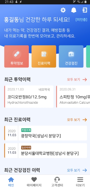 ▶ 건강검진 결과 정보, 병원 진료일자, 약국 이용 내역 등 모든 정보를 모아서 정보가 제공되니 너무 편리하고 좋습니다.