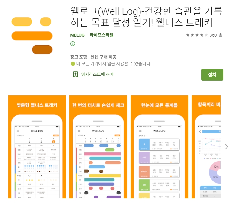 세 번째 소개할 어플은 웰 로그(Well Log) (건강한 습관 기록) 어플입니다. 아래는 웰 로그(Well Log) (건강한 습관 기록) 어플에 대한 자세한 설명이니 참고하세요~