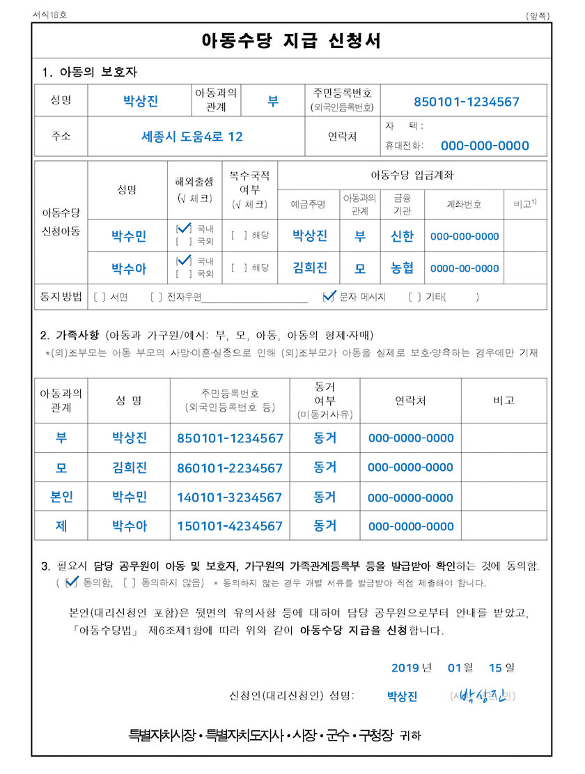 - 아동수당만 신청하는 경우 : 『아동수당 지급 신청서』