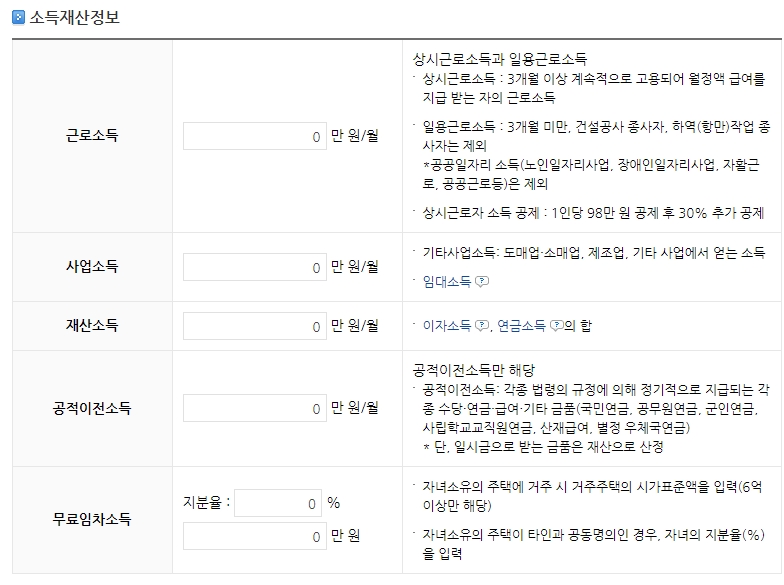 ※ 소득인정액’이란 월 소득평가액과 재산의 월 소득환산액을 합산한 금액을 말합니다.