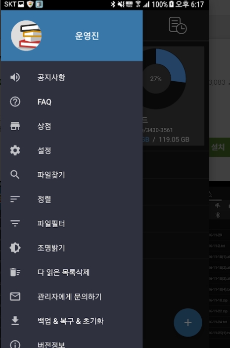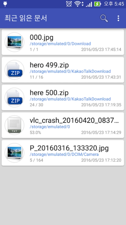 ※ 사용자 휴대폰에 이미지 문서를 압축파일 형태로 넣으시면 탐색하여 뷰어처럼 볼수 있습니다.