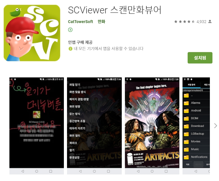 네번째 소개할 어플은 SCViewer 스캔만화뷰어 어플입니다. 아래는 SCViewer 스캔만화뷰어 어플에 대한 자세한 설명이니 참고하세요~