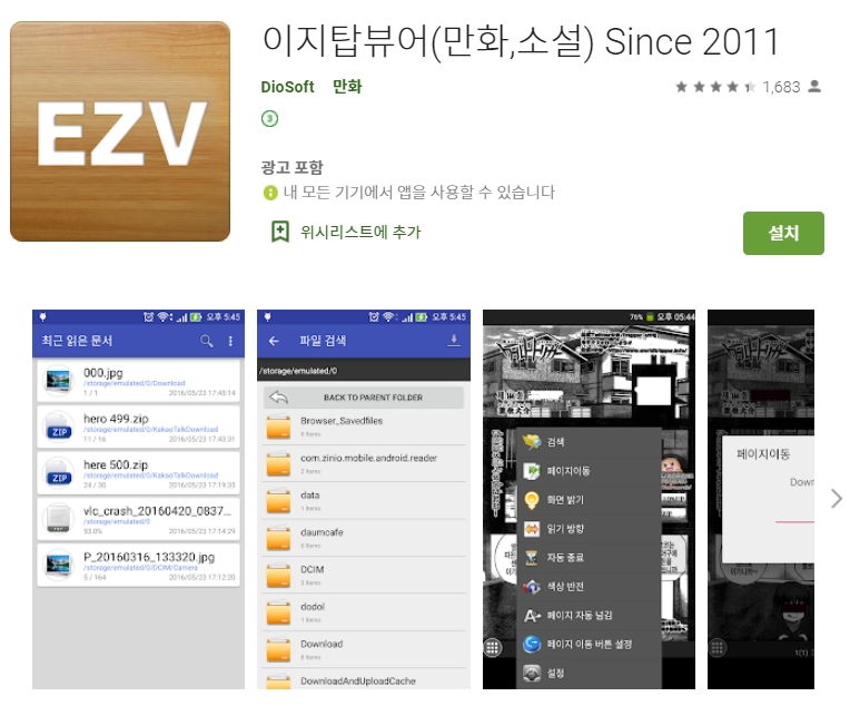 다섯번째 소개할 어플은 이지탑뷰어(만화,소설) 어플입니다. 아래는 이지탑뷰어(만화,소설) 어플에 대한 자세한 설명이니 참고하세요~