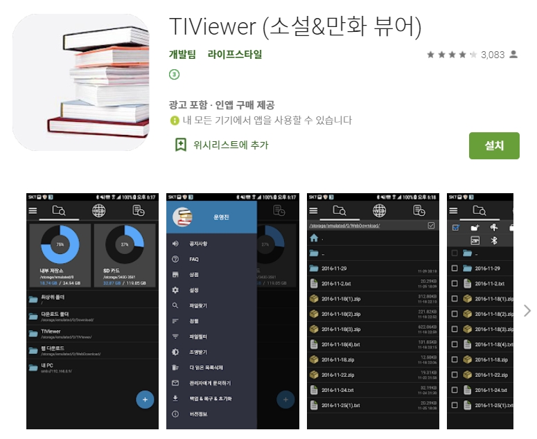 두번째 소개할 어플은 TIViewer (소설&만화 뷰어) 어플입니다. 아래는 TIViewer (소설&만화 뷰어) 어플에 대한 자세한 설명이니 참고하세요~