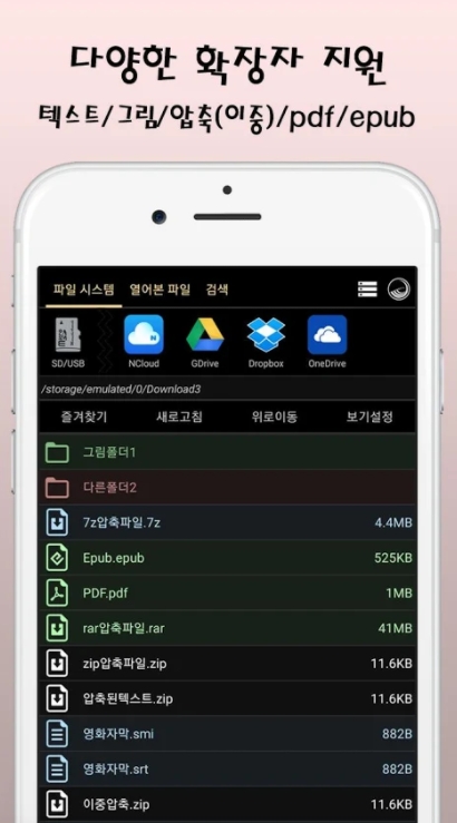 *. 구글 Drive, Dropbox, Astro, Filemanager등의 앱과 연동됩니다.