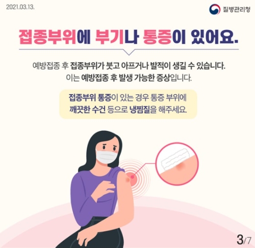코로나19 예방접종후 접종부위에 부기나 통증이 있을경우