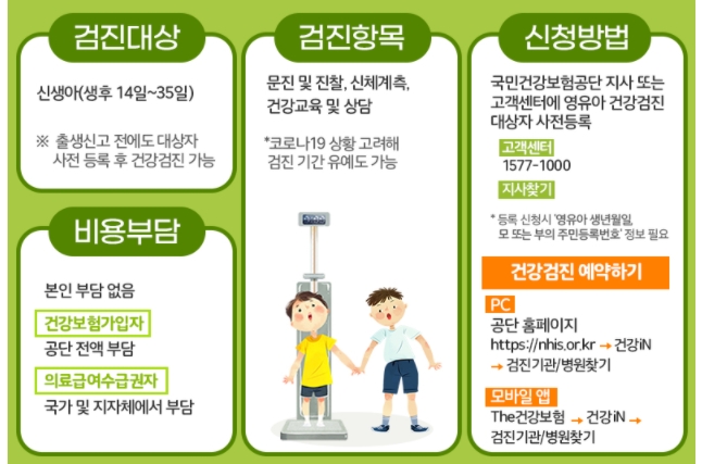 - 국민건강보험공단 지사 또는 고객센터에 영유아 건강검진 대상자 사전등록