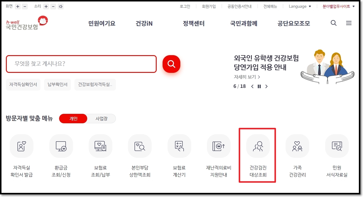 자 그럼 건강검진 대상자인지 아닌지 확인하는 방법에 대해 알아보도록 하겠습니다.