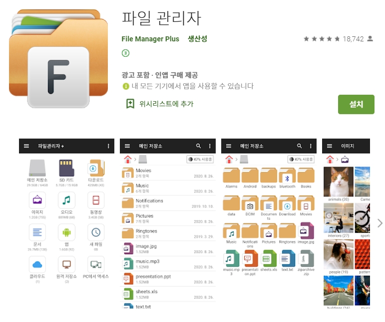 첫번째 소개할 어플은 파일 관리자 어플입니다. 아래는 파일 관리자 어플에 대한 자세한 설명이니 참고하세요~