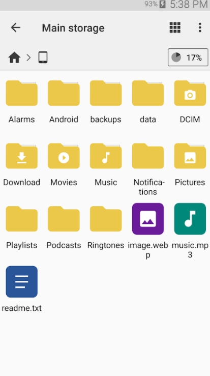 • 메인 스토리지: 로컬 기기 스토리지에 있는 모든 파일과 폴더를 관리할 수 있습니다.