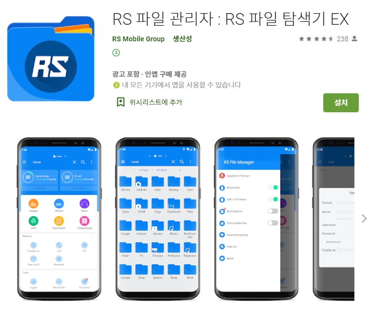 다섯 번째 소개할 어플은 RS 파일 관리자 어플입니다. 아래는 RS 파일 관리자 어플에 대한 자세한 설명이니 참고하세요~