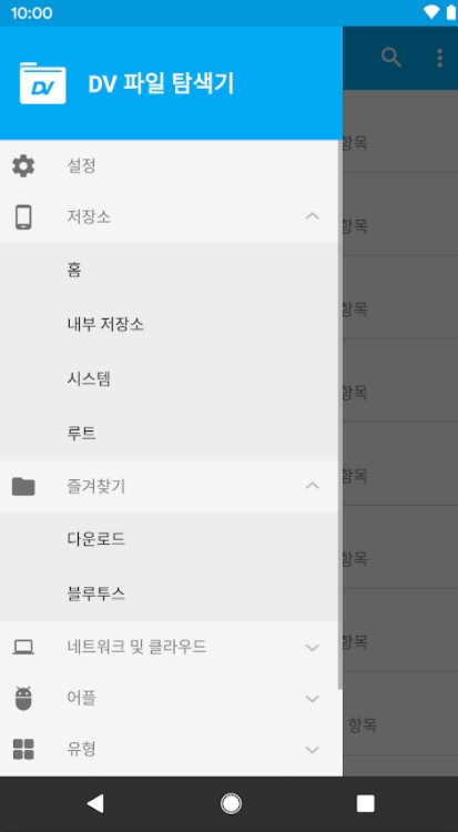 DV 파일 탐색기를 사용하면 장치의 메모리, microSD 카드, 근거리 통신망 및 클라우드 저장소 계정에 저장되어있는 모든 파일을 관리할 수 있습니다. 기본적으로 DV 파일 탐색기를 사용하면 모든 저장소에서 파일을 복사, 이동, 이름 바꾸기, 삭제 또는 공유할 수 있습니다. 또한 범주별로 파일을 탐색하고 액세스 할 수 있습니다.