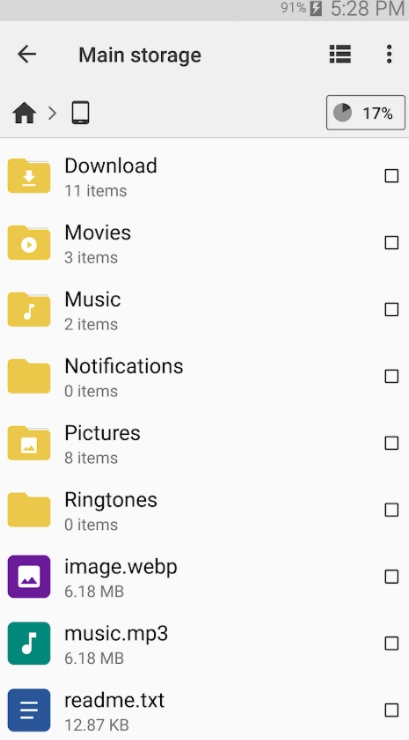 • 메인 스토리지: 로컬 기기 스토리지에 있는 모든 파일과 폴더를 관리할 수 있습니다.