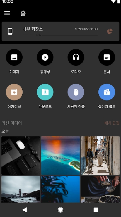 • 홈 화면에서 모든 이미지, 동영상, 음악, 앱, 최신 폴더에 쉽게 액세스할 수 있습니다.