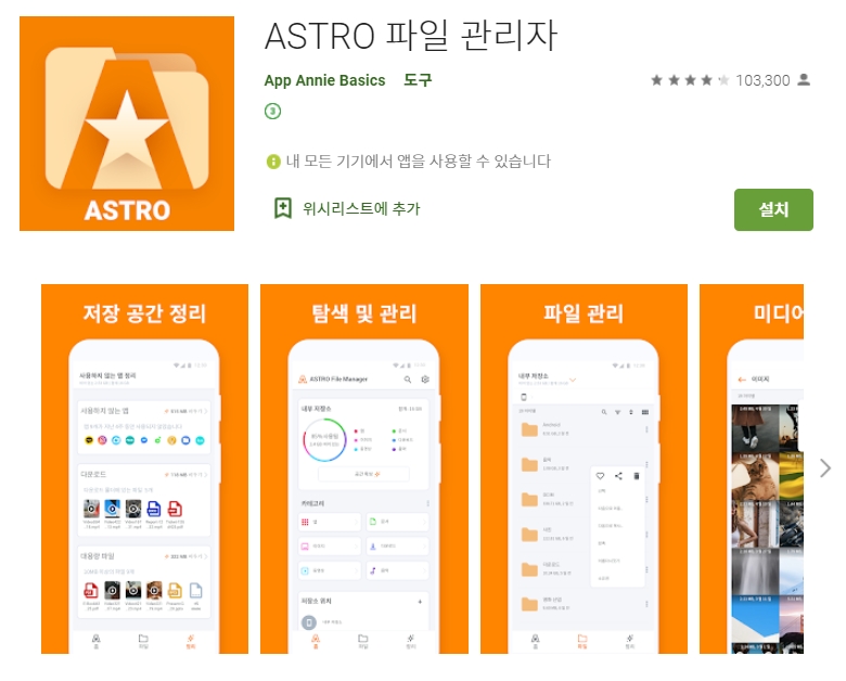 두 번째 소개할 어플은 ASTRO(아스트로) 파일 관리자 어플입니다. 아래는 ASTRO(아스트로) 파일 관리자 어플에 대한 자세한 설명이니 참고하세요~