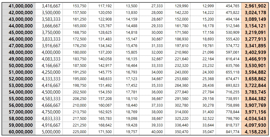 아래표는 보기쉽게 4대보험과 소득세 지방소득세를 뺀 실제 실수령액을 보기쉽게 표로 정리를 해놓은것입니다. 회사마다 조금씩 틀리겠지만 일만적으로 이정도 나온다 라고 예측할수는 있을겁니다. 대략적으로 참고하는용도이지 정확한것은 아니라는점 알아두셨으면 합니다~