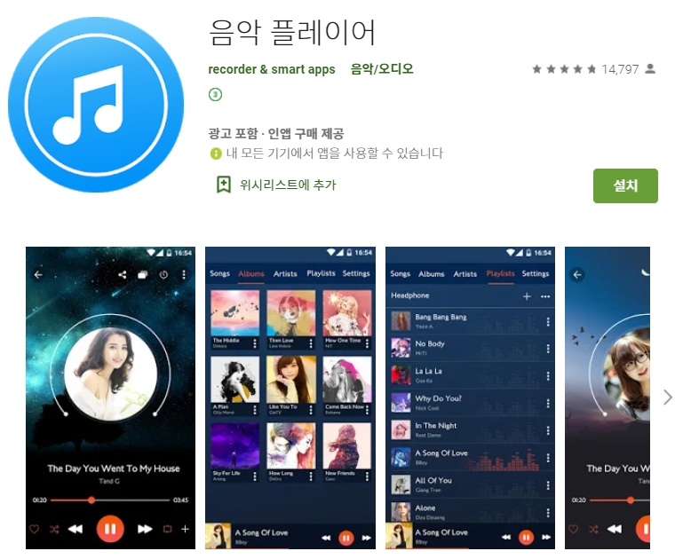 두 번째 소개할 어플은 음악 플레이어 어플입니다. 아래는 음악 플레이어 어플에 대한 자세한 설명이니 참고하세요~