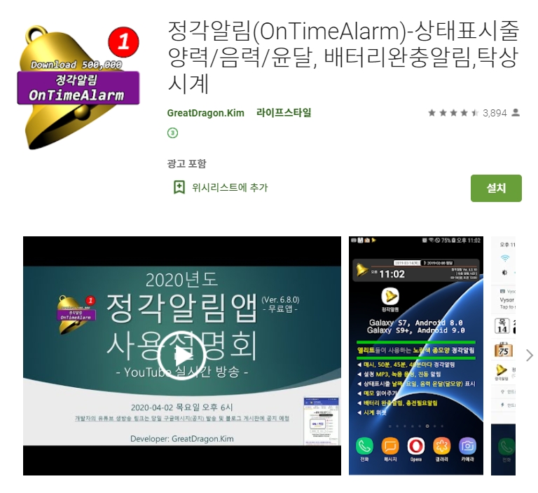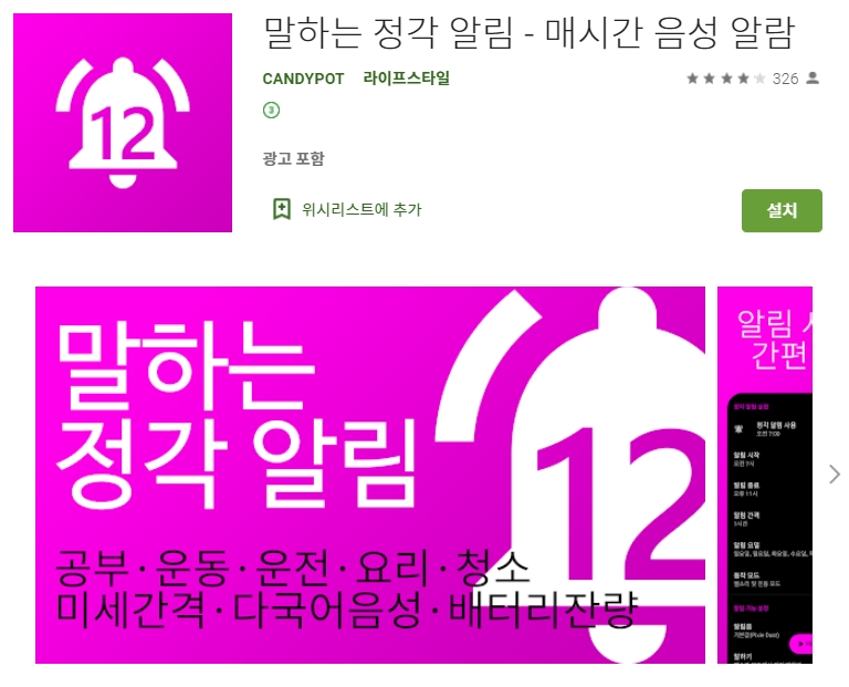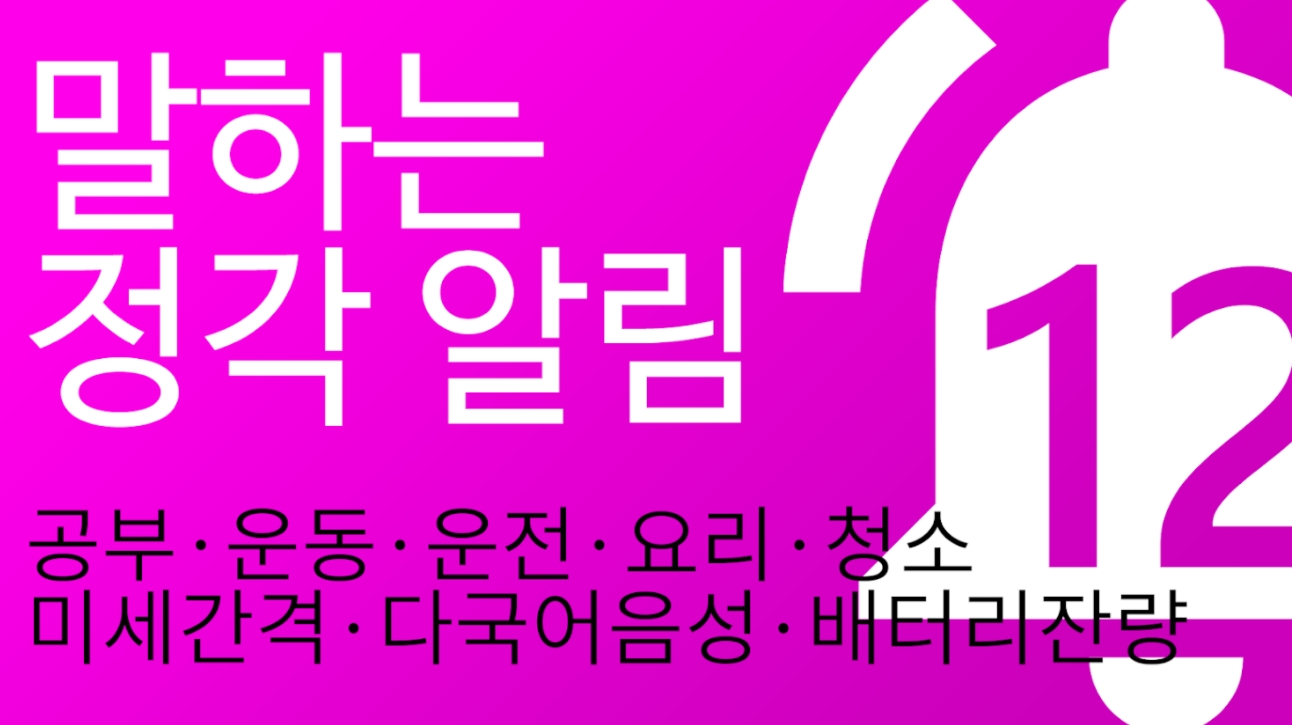 두 번째 소개할 어플은 말하는 정각 알림 어플입니다. 아래는 말하는 정각 알림 어플에 대한 자세한 설명이니 참고하세요~