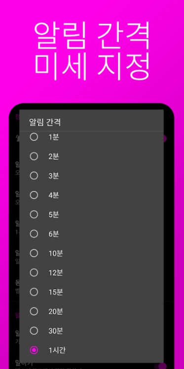 간격: 알림 간격을 최소 1분에서 1시간 사이로 선택할 수 있습니다.
