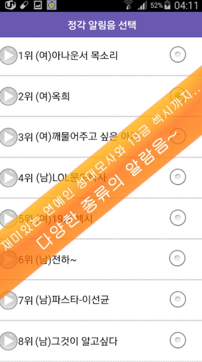 *남, 여, 테마별로 다양한 알람음을 만나실 수 있습니다.