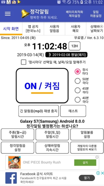 ▶ 최근 업데이트 후 앱에 들어가지고 정각 알림도 안 빠뜨리고 잘 알려줍니다. 최고의 정각 알림 앱입니다.