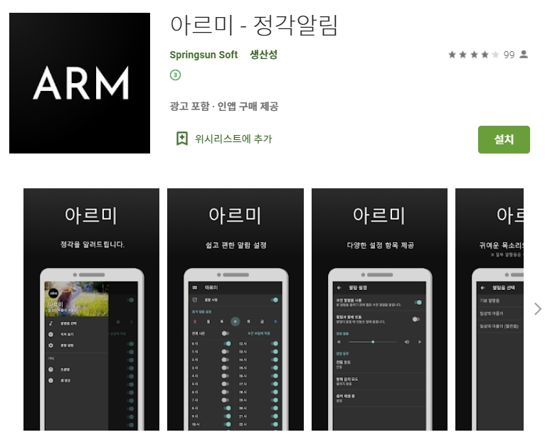 네 번째 소개할 어플은 아르미 - 정각 알림 어플입니다. 아래는 아르미 - 정각알림 어플에 대한 자세한 설명이니 참고하세요~