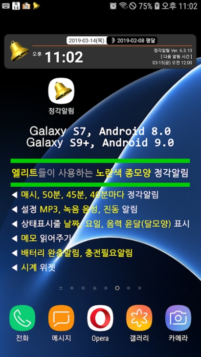 ▶ 정시에 시간 알려주는 앱이고 잡기 능 없이 딱 이 기능만 있어요. 그래서 좋아요.
