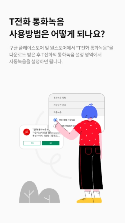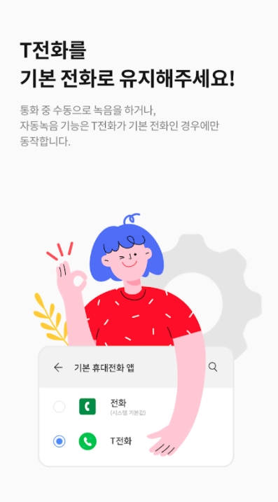 ▶ 이 앱 계속 유지해주세요. 진짜 티 전화와 함께 필수 앱입니다 정말 감사합니다. 그리고 안 되는 분들 설정 가서 이 앱에 백그라운드에서 실행 허용, 이앱에 배터리 절전 사용 안 함 꼭 설정하세요. 안 그러면 녹음 대기 중만 뜨고 녹음 안됩니다.