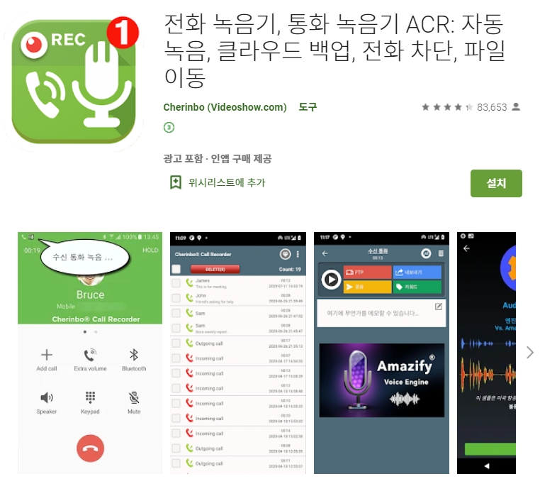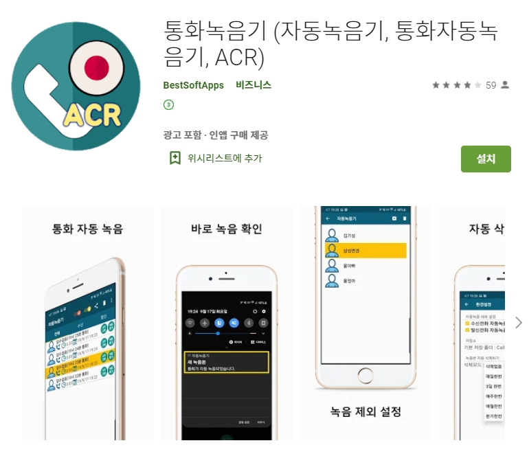 첫 번째 소개할 어플은 통화녹음기 (자동녹음기, ACR) 어플입니다. 안드로이드폰 전용 어플이며 무료입니다. 아래는 통화녹음기 (자동녹음기, ACR) 어플에 대한 자세한 설명이니 참고하세요~