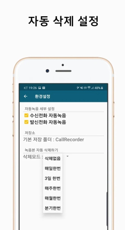 - 언제 어디서나 자동으로 받거나 거는 전화를 모두 녹음합니다.