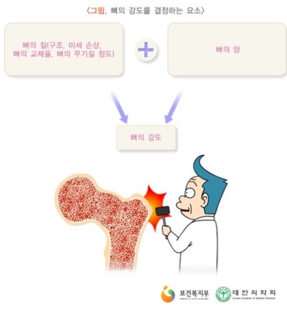 뼈는 성장이 멈춰있는 조직이 아니라 일생동안 지속적으로 생성과 성장, 흡수의 과정을 반복하며 변하는 장기입니다. 1년마다 10%의 뼈가 교체되고 10년이 지나면 우리 몸의 뼈는 모두 새로운 뼈로 교체됩니다. 20대에서 30대까지 골밀도가 가장 높고 그 이후로는 조금씩 감소하다가 여성의 경우 폐경 첫 5년간 급속도로 골밀도가 약해집니다.