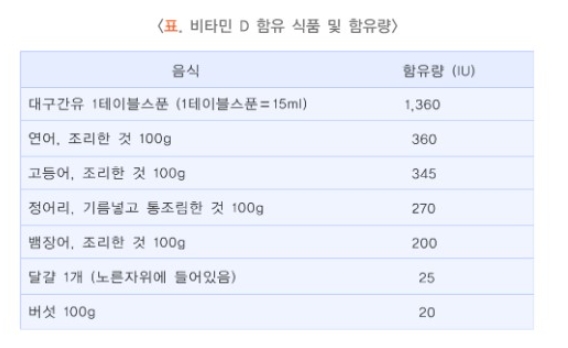 비타민D는 식이를 통한 섭취와 자외선에 의한 피부 합성을 통해 체내로 공급되며 간과 신장을 거치면서 활성형 비타민D가 되어 장에서 칼슘의 흡수를 증가시키고 뼈의 무기질 침착에 중요한 역할을 합니다. 비타민D가 결핍되면 뼈가 약해지는 골연화증이 발생됩니다.