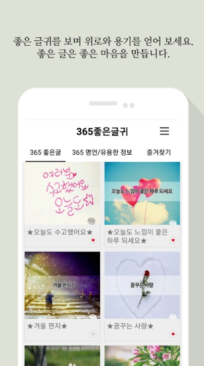 1. 365 좋은글귀 어플 (좋은글,명언,감동글)