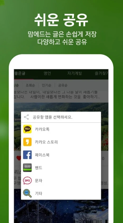 어느덧 나만의 명언집이 완성되어 언제든 다시 보고 카톡이나 문자로 친구와 공유할 수 있습니다.
