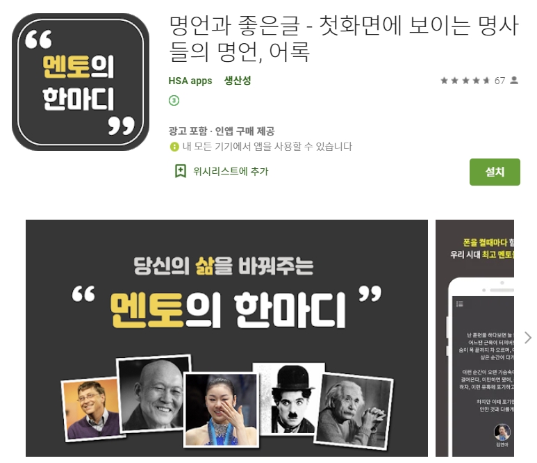 명언과 좋은 글 어플을 만들어 주신 개발자님 감사합니다~