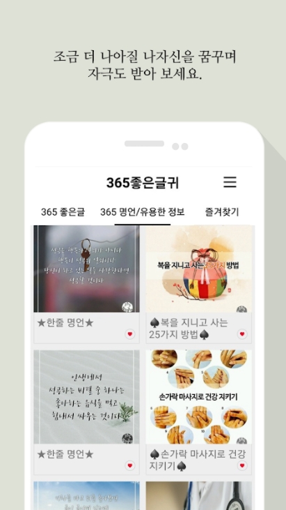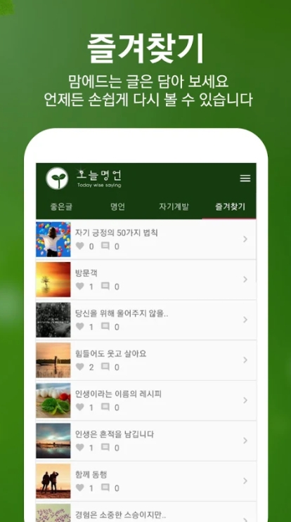 - 명언, 좋은 글, 자기 계발 즐겨찾기(탭 메뉴) 제공