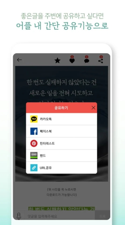 맘에 드는 명언이 있다면 공유하기로 친구들에게 공유하거나 이미지로 저장해보세요