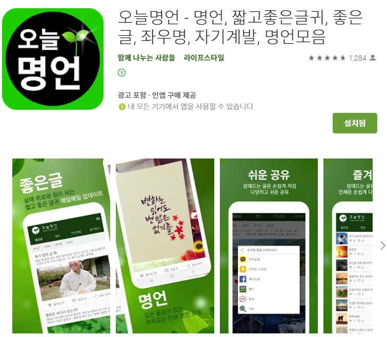 네 번째 소개할 어플은 명언과 좋은 글 어플입니다. 아래는 명언과 좋은글 어플에 대한 자세한 설명이니 참고하세요~