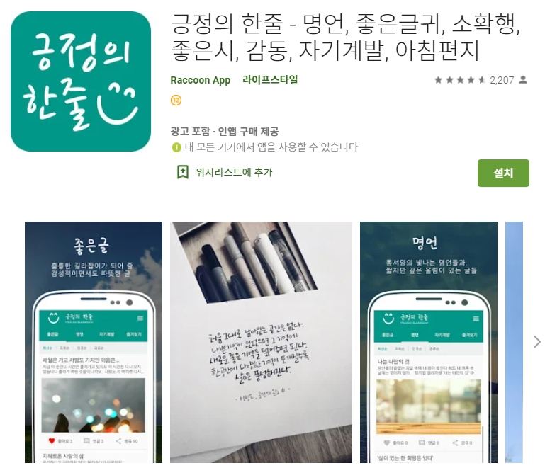3. 긍정의 한 줄 어플 (명언 좋은 글귀 아침편지 소확행)