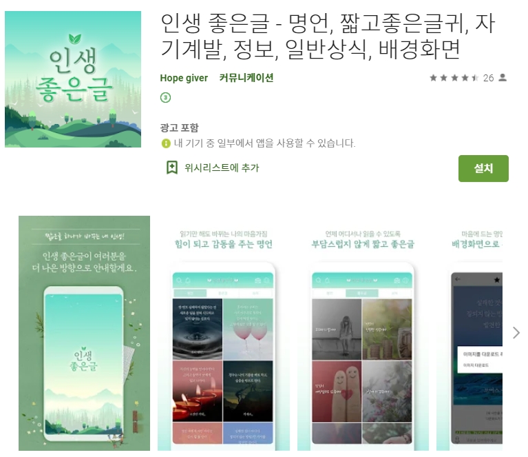 인생 좋은 글 어플을 만들어 주신 개발자님 감사합니다~