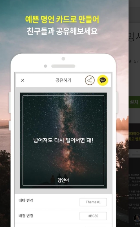 내가 선택한 명언을 예쁜 이미지로 만들어 줍니다.