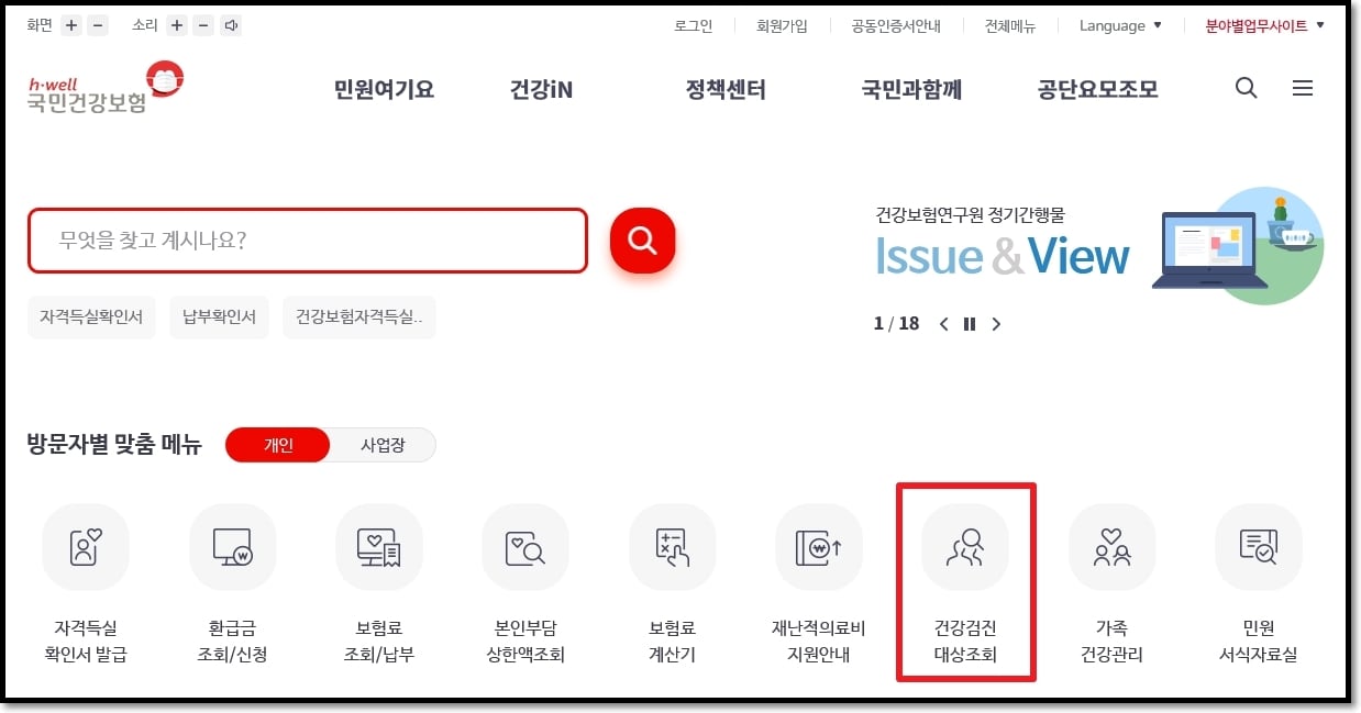 ▲ 그다음 건강검진 대상 조회 메뉴를 클릭합니다.